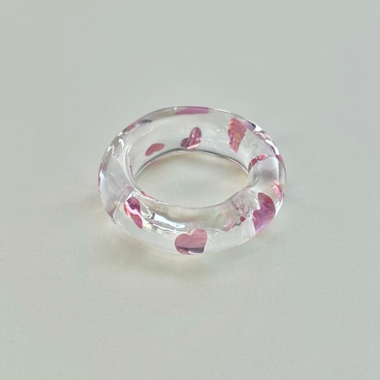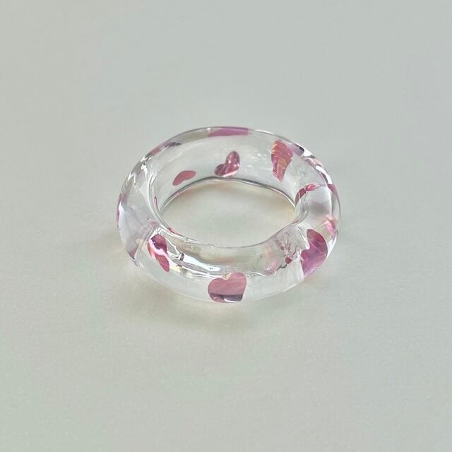 ハートをたくさん閉じ込めたデザインのクリアリング。