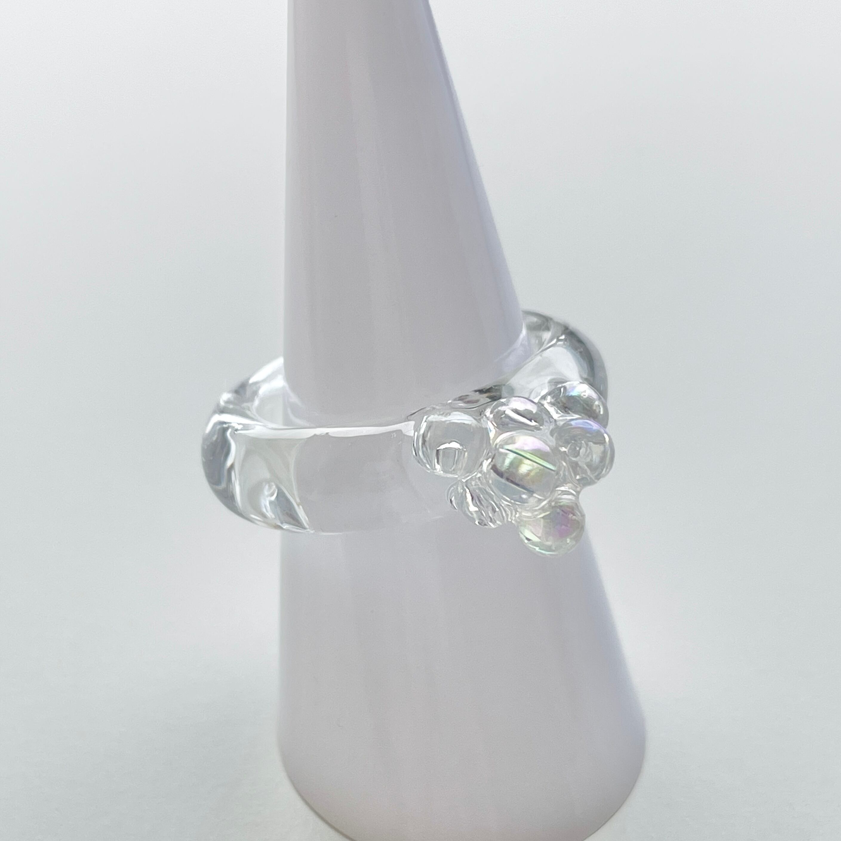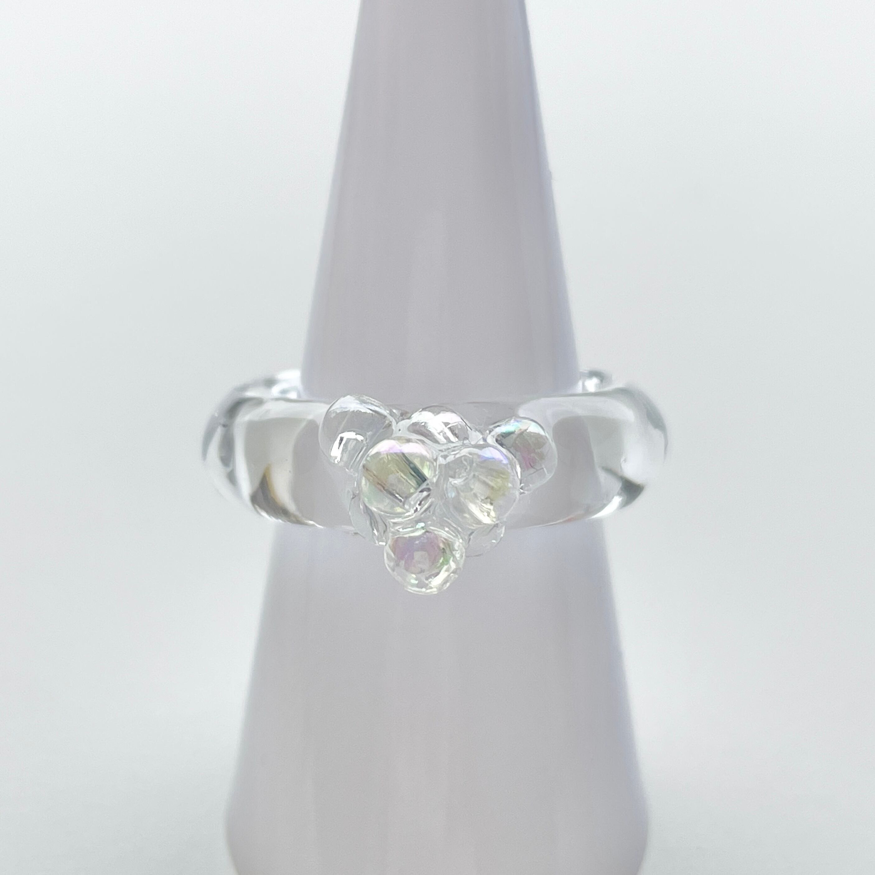 オーロラビーズが可愛い泡がついたようなデザインのクリアリング。