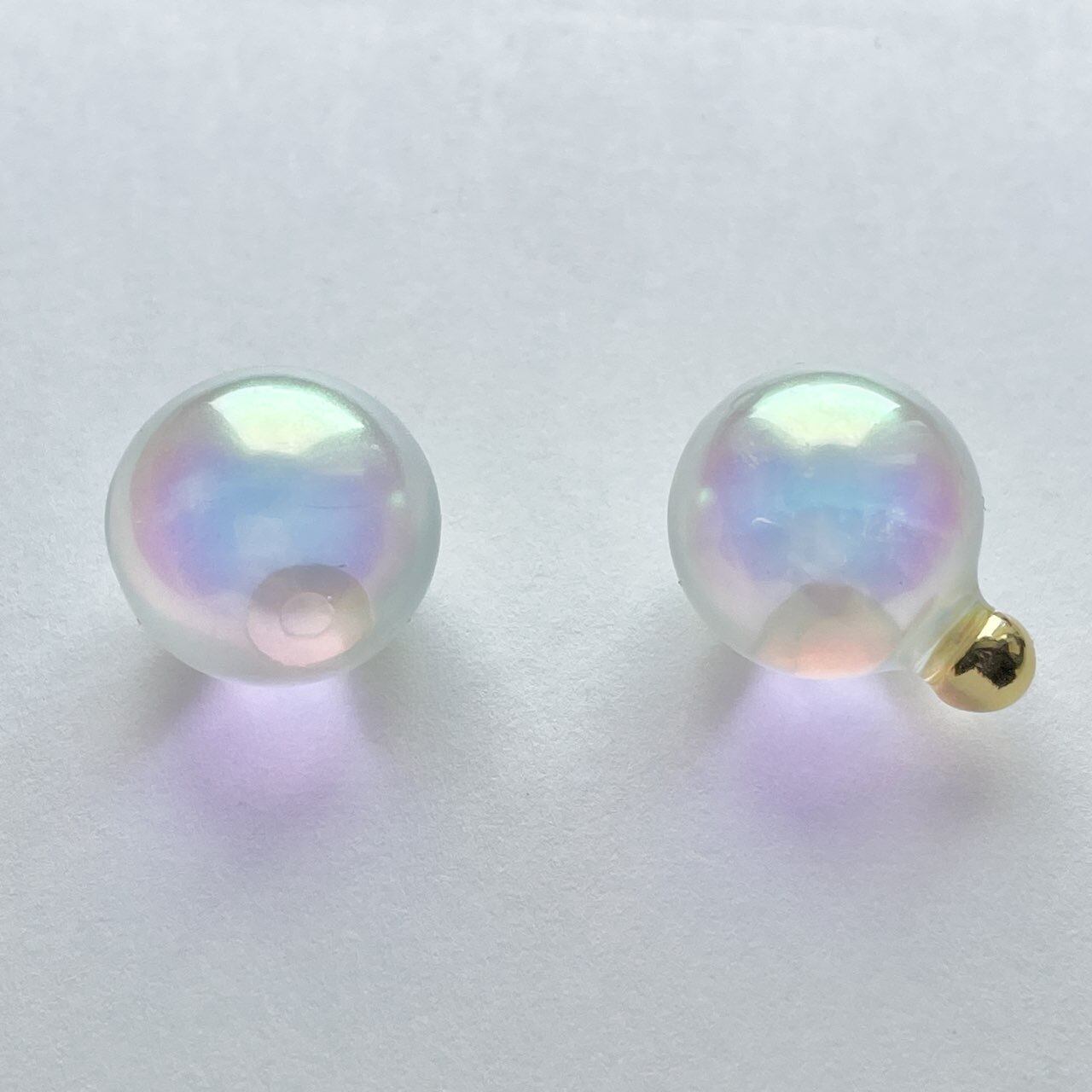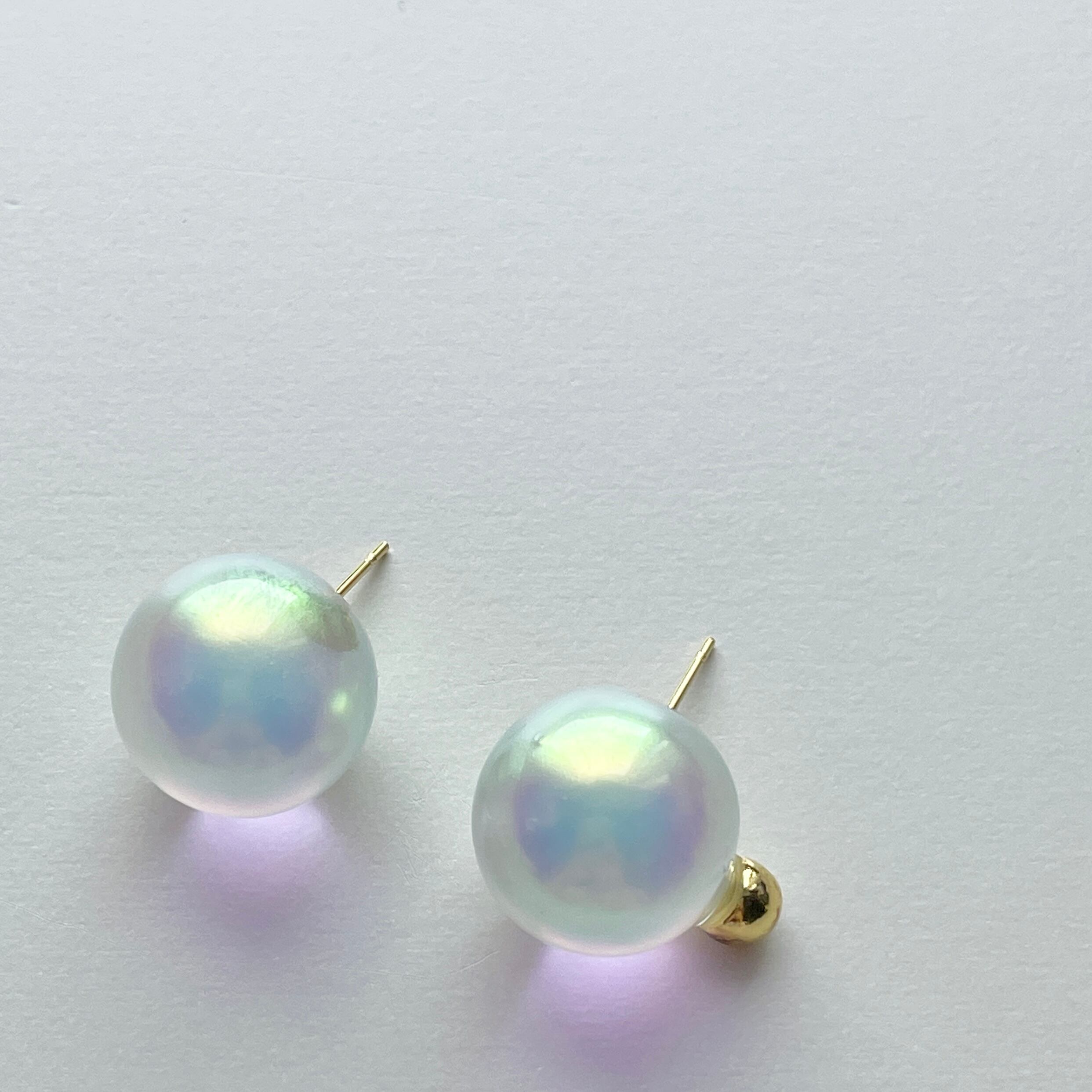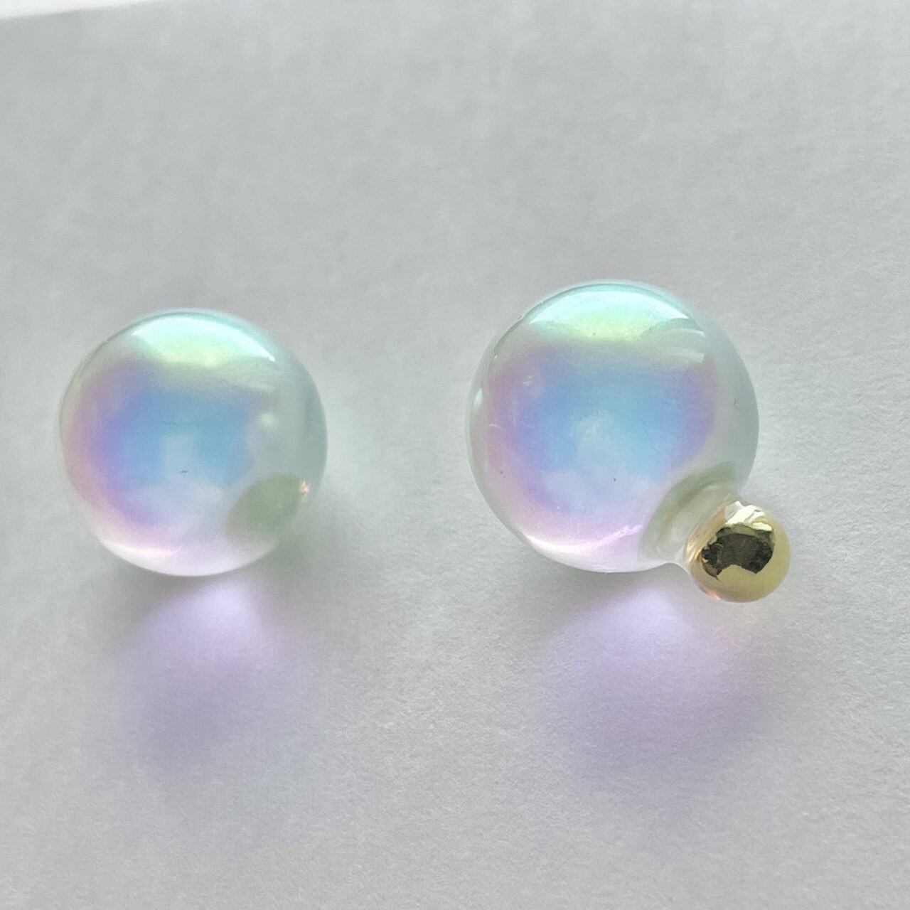 オーロラカラーのクリアボールピアス。